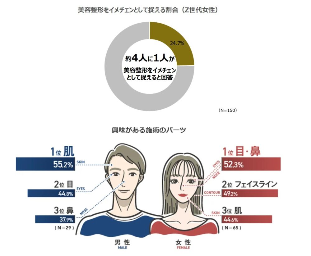 この画像はZ世代の女性を対象に、整形をどの様に捉えているか?というアンケートの結果です。